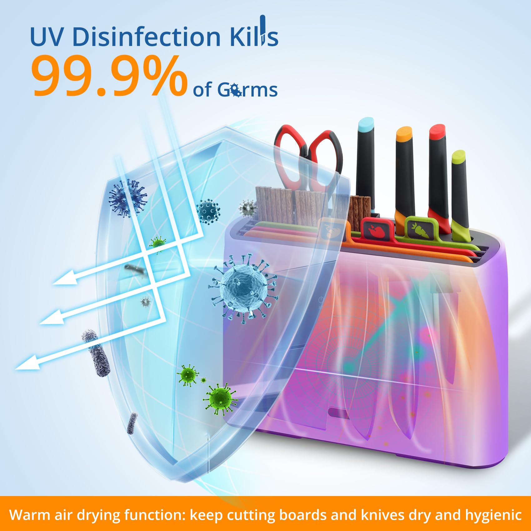 UV + high-temperature auto-drying keeps boards and knives dry, clean, and ready to reuse. No more wet tools or messy storage!